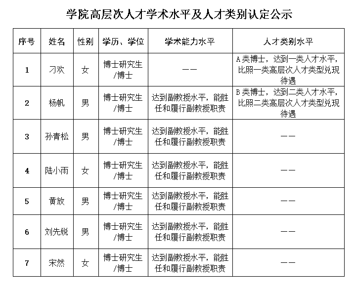 beat365在线唯一官网关于2022年度公开引进高层次人才学术能力水平及人才类别水平认定结果公示