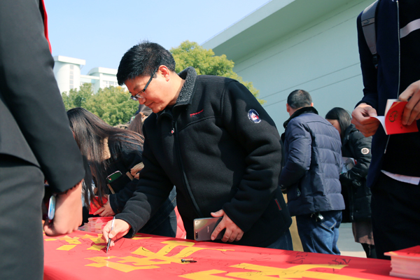 签名活动设在学院学生餐厅东门,院长助理、组织人事处处长吴晓光莅临活动现场。除了签名以外,保卫处还现场向师生发放了宪法宣传小读本。签名横幅现悬挂在学生餐厅东门的护栏上。