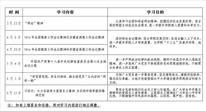 学院2015-2016学年度第二学期教职工政治理论学习安排表