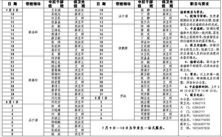 2016年暑期干部值班表