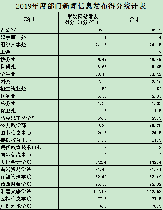 根据《关于印发beat365在线唯一官网新闻报道奖励办法(试行)的通知》(院办字〔2018〕44号)文件,经学院办公室和现代教育技术中心统计,现将2019年度学院新闻信息发布统计结果予以公布。