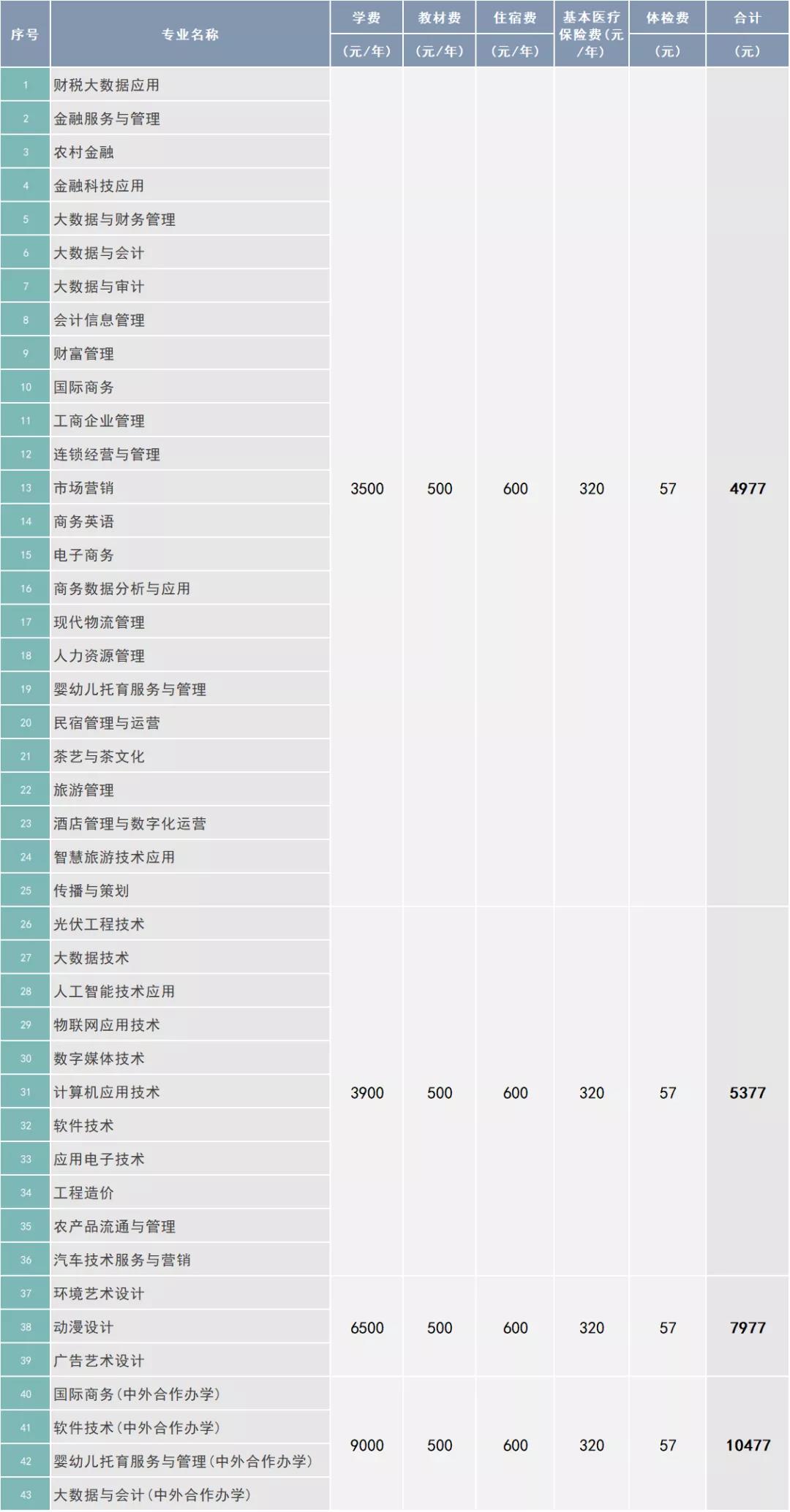 注:1.各专业学费按安徽省物价局、安徽省财政厅等部门文件规定执行。