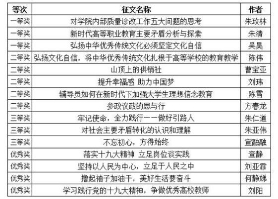 日前,学院开展了“学习宣传贯彻党的十九大精神”主题征文活动,得到了全院教职工的积极响应,共收到征文15篇,经评委匿名评审、相似性检测,现将评审结果公布如下: