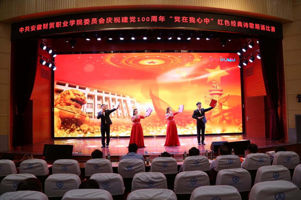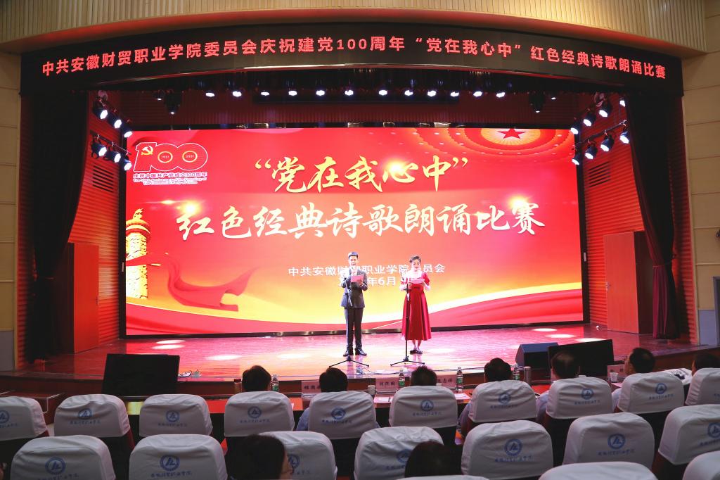 本次比赛围绕“诵读红色经典,致敬光辉百年;传承红色基因,牢记初心使命”主题,全校14个基层党组织共推荐20个节目参加比赛。比赛现场,参赛选手以饱满充沛的感情诵读《忆峥嵘岁月传红色精神》《可爱的中国》《百年约定》《七月的天空》《毛泽东诗词诵读》等红色经典诗歌,选手们用饱含深情、铿锵有力的朗诵声带领着现场观众重温中国共产党百年峥嵘岁月,感受伟大建党精神和革命精神。通过激烈的角逐,最终学生处党支部《火红的七月》、财会金融学院党总支《有一首歌》荣获一等奖,评选出二、三等奖各6个。