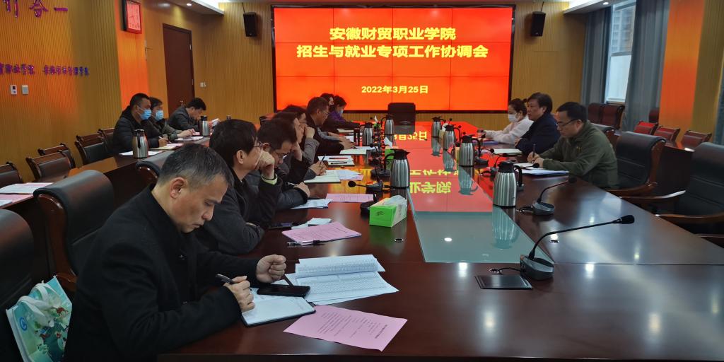 为积极推进学校招生与就业工作有序开展,3月25日下午,学校在翡翠校区行政楼204会议室召开招生与就业专项工作协调会。学校党委委员、副校长胡戴新出席会议并讲话,学生处、二级院部招生、就业负责人参加会议。