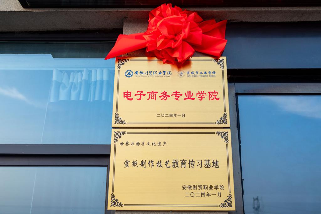 1月15日下午,我校“电子商务专业学院”“宣纸制作技艺教育传习基地”在宣城市工业学校正式揭牌。我校党委副书记、校长刘银国,泾县县政府副县长黄凰,县教体局副局长佘臬刚,宣城市工业学校党委书记刘朝阳,党委副书记洪小龙等出席揭牌仪式。