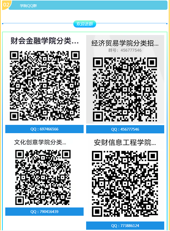 以上各个院部qq群都可咨询校考报名事宜,近期招生电话咨询较多,各位考生们也可进群咨询并交流。