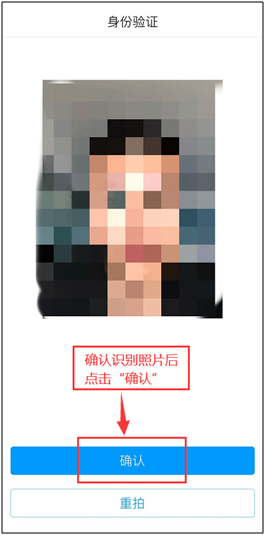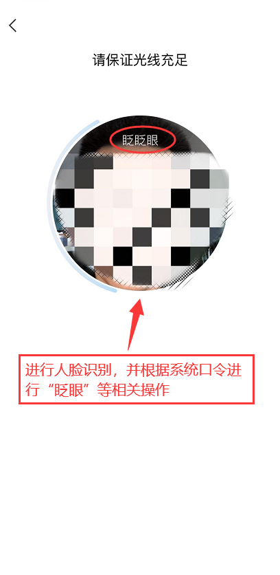 3.进行人脸识别,并根据系统口令进行“眨眼”等动作,识别成功后点击“‘确认”;(注意:请保证识别时光线充足)