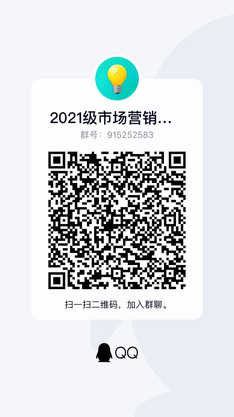 被市场营销专业录取的考生,请统一加入QQ群915252583,老师将线上进行专业咨询服务,带你提前了解所学专业。