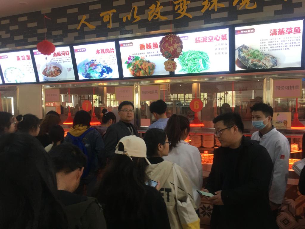 张伟、魏立新逐一对三家餐饮企业经营的大伙窗口及风味窗口售卖的饭菜品质和价格、学生日常就餐情况等进行了详细的检查,并仔细查看各餐厅售卖窗口学生的购餐情况,与排队就餐学生交流,了解学生对食堂饭菜口味、质量与价格等方面的意见建议。并鼓励同学们积极参与总务处对校园商品食品等价格监督,总务处已在各公寓、食堂、学生服务中心、综合楼等处设置意见箱,同学可以正常渠道反映问题,总务处坚决维护学生正常权益不受损失。