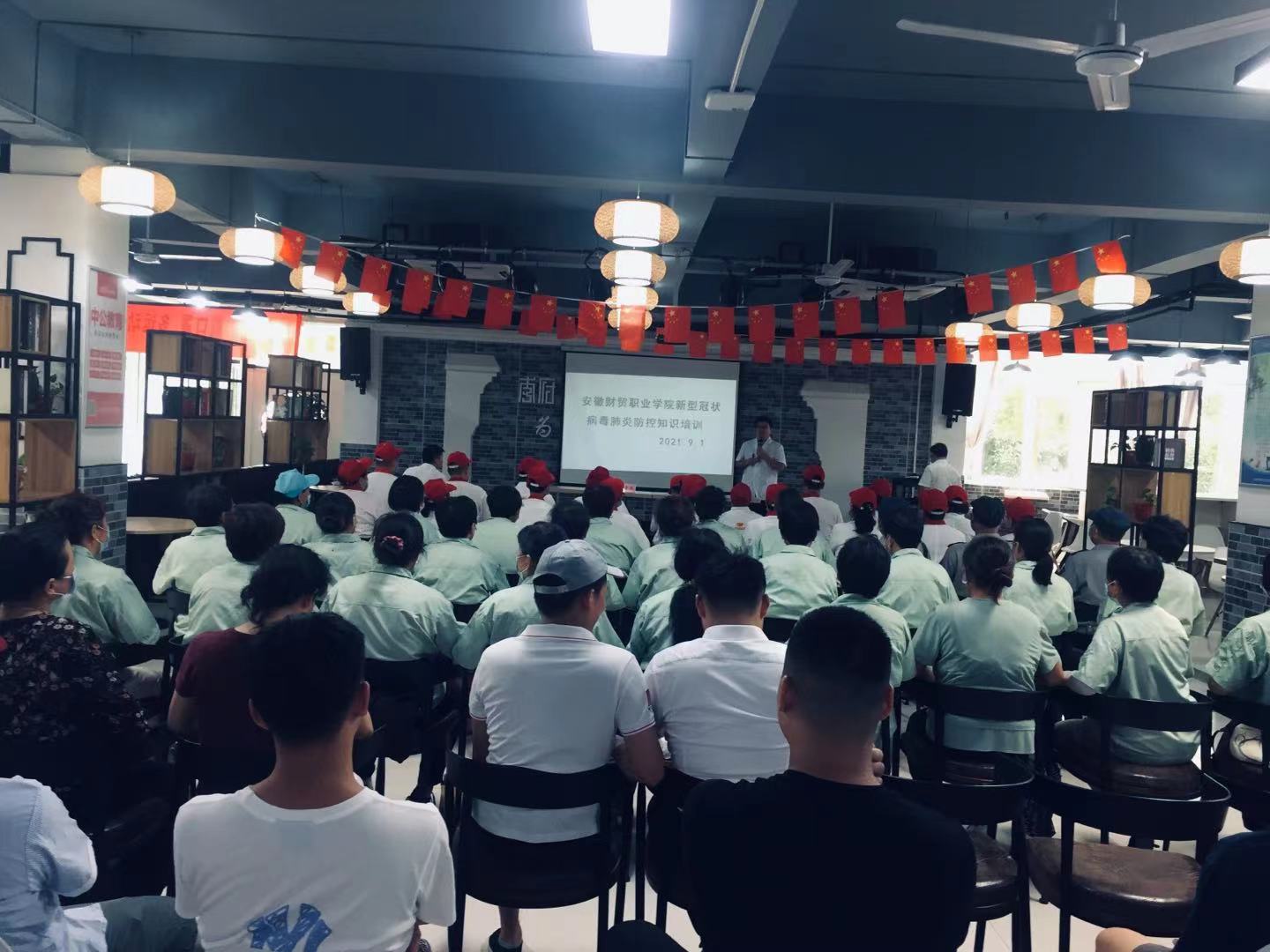 强化疫情防控知识宣传,重视服务人员教育培训。返校前,医务室在今日校园医务室公众号和QQ工作群面向广大师生发布新冠肺炎疫情防控知识,个人防护等信息,在校园行政楼和食堂、公寓等醒目位置悬挂防疫知识条幅,制作宣传展板;9月1日,医务室在食堂一楼大厅对后勤、物业保安、保洁,三家餐饮公司,校内建筑企业等相关服务人员进行疫情防控知识和技能全员培训,增强风险意识和责任意识。