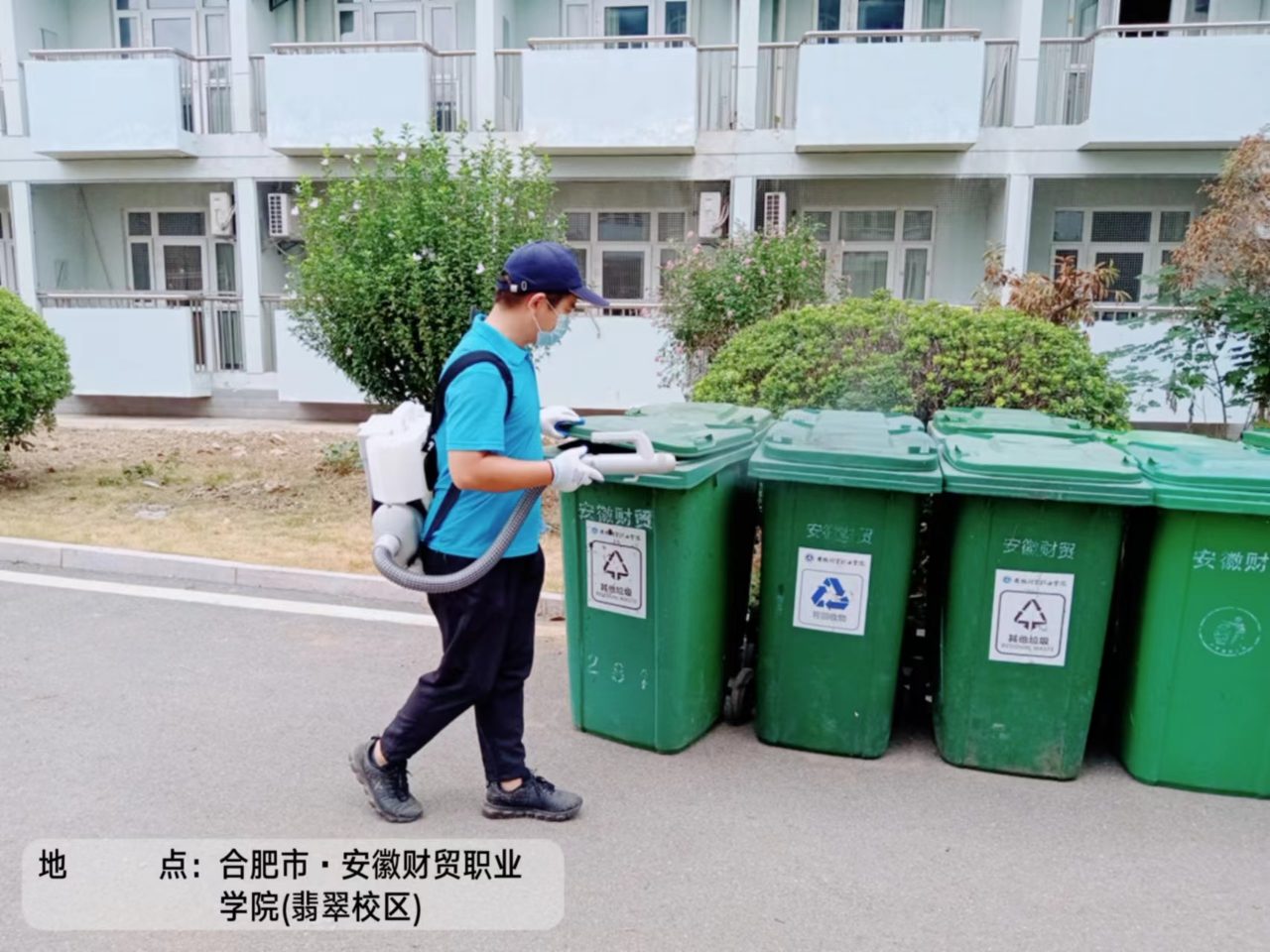 此次消杀主要针对楼宇周边环境及楼内公共大厅、公寓盥洗室、卫生间、走廊、楼梯间、垃圾箱、楼梯扶手等师生接触较多的区域。为确保消杀效果,总务处要求消杀人员和物业保洁员进行全面的卫生清理、消毒、通风,不放过任何死角。消杀过程中,还对校园内所有灭鼠毒饵站进行鼠药更换,灭蝇、灭蚊笼投放诱饵,线桥缝隙死角处投放灭蟑诱剂等降低校园内病媒生物密度。