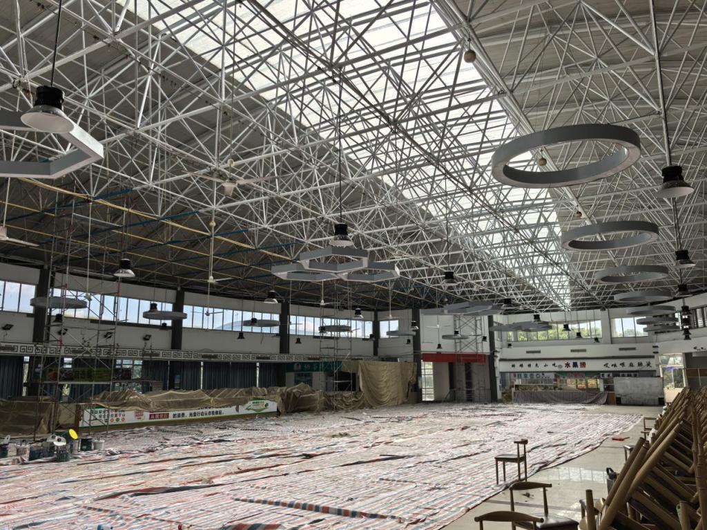 本次维修工程涉及面广、任务重、要求高,主要包括:学生食堂屋顶整体修缮及漏水点修补、内部钢架全面油漆维护、大厅中央防尘布更换等多个关键项目。为确保工程安全、质量与进度,总务处制定了详实的暑期维修值班制度。值班人员每日深入施工现场,严格监督施工环境、实时掌握工程进度、反馈现场管理情况,对发现的问题立行立改,严把每一道施工质量关。