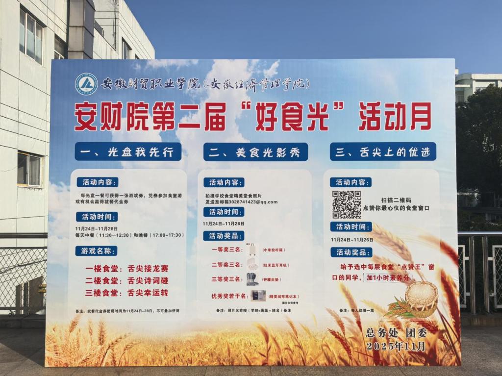 光盘我先行。为深入推动学校反食品浪费工作,扩大光盘行动的覆盖面,本次“光盘我先行”活动创新升级,三家学生食堂分别设置差异化趣味游戏。一楼“舌尖接龙赛”、二楼“舌尖诗词碰”、三楼“舌尖幸运转”,学生凭光盘领券参与游戏,通过互动挑战赢取不同面额食堂代金券。活动激发师生节约热情,形成“人人爱节约、餐餐不浪费”的良好风尚,累计千余名同学获奖。